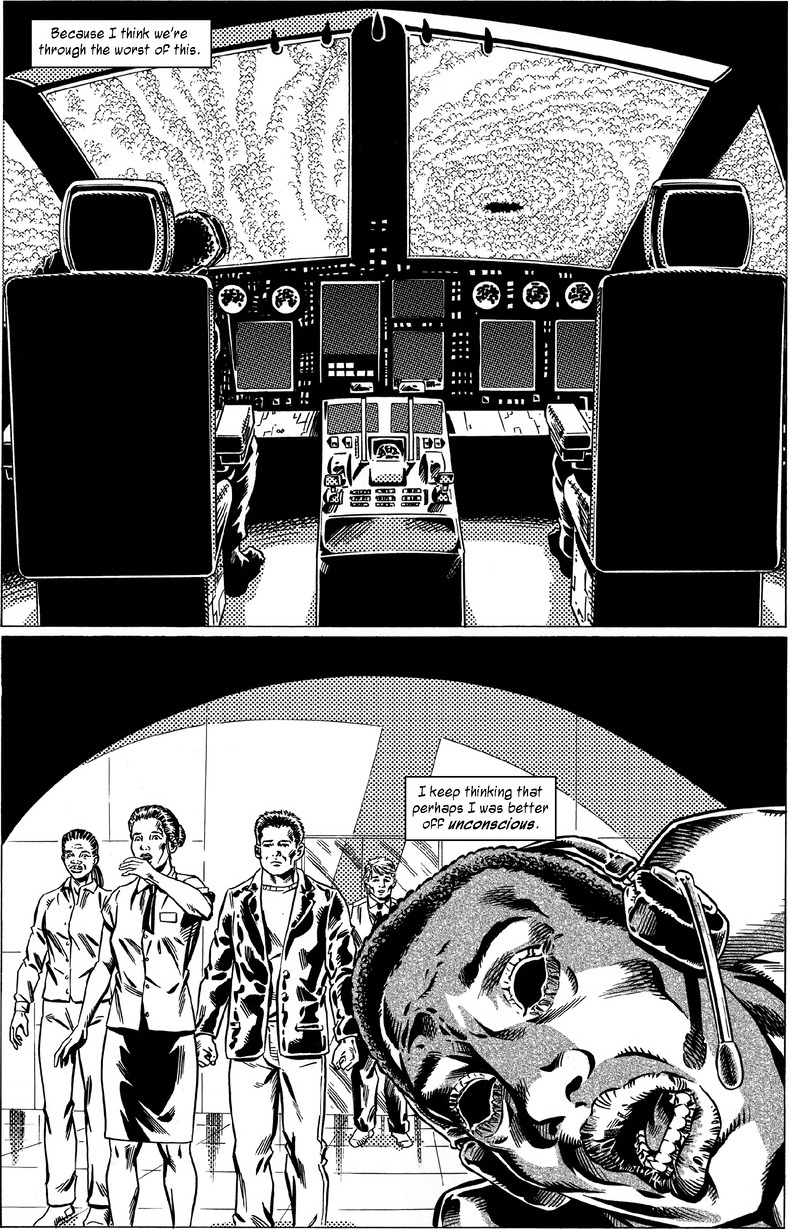 After a planeload of passengers get sucked through a wormhole into "strange skies", the fear of what lies beyond the confines of the cabin grips the passengers on board. Are there monsters outside?